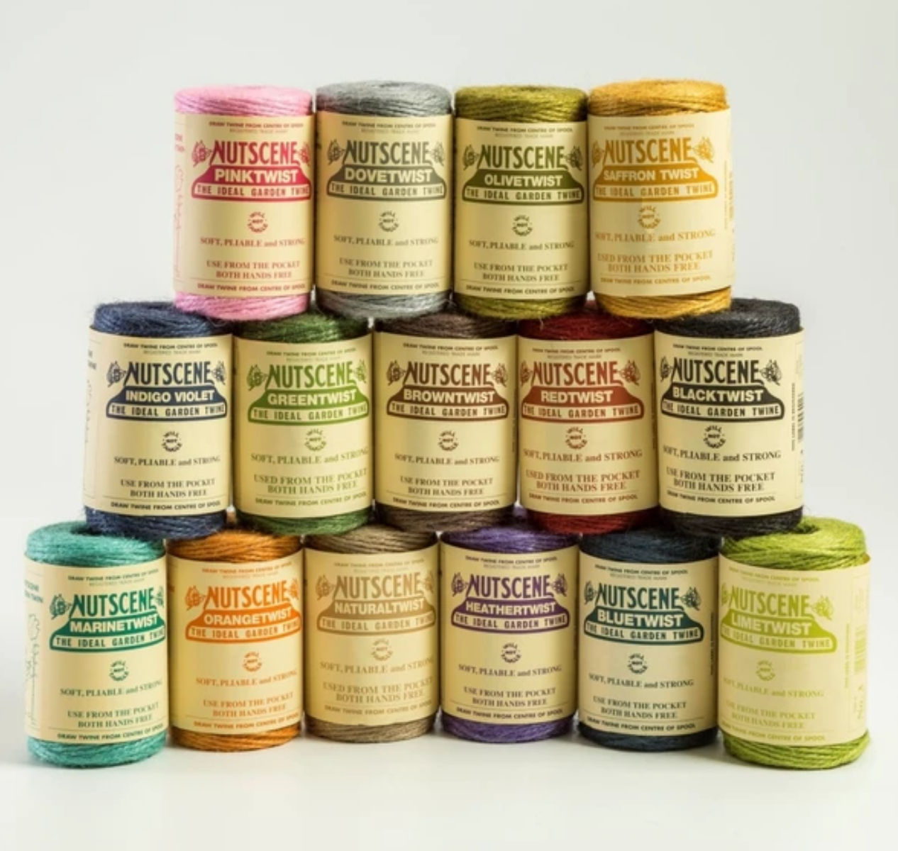 The Company-Nutscene Twines Ltd, Produces the Nutscene brand with pride. The patented “Greentwist” centre pull lock tie spool of twine was first produced in Dundee, Scotland. When this wonderful green twine was used to tie up plants it was, of course, ‘not seen’ giving rise to “Nutscene!”