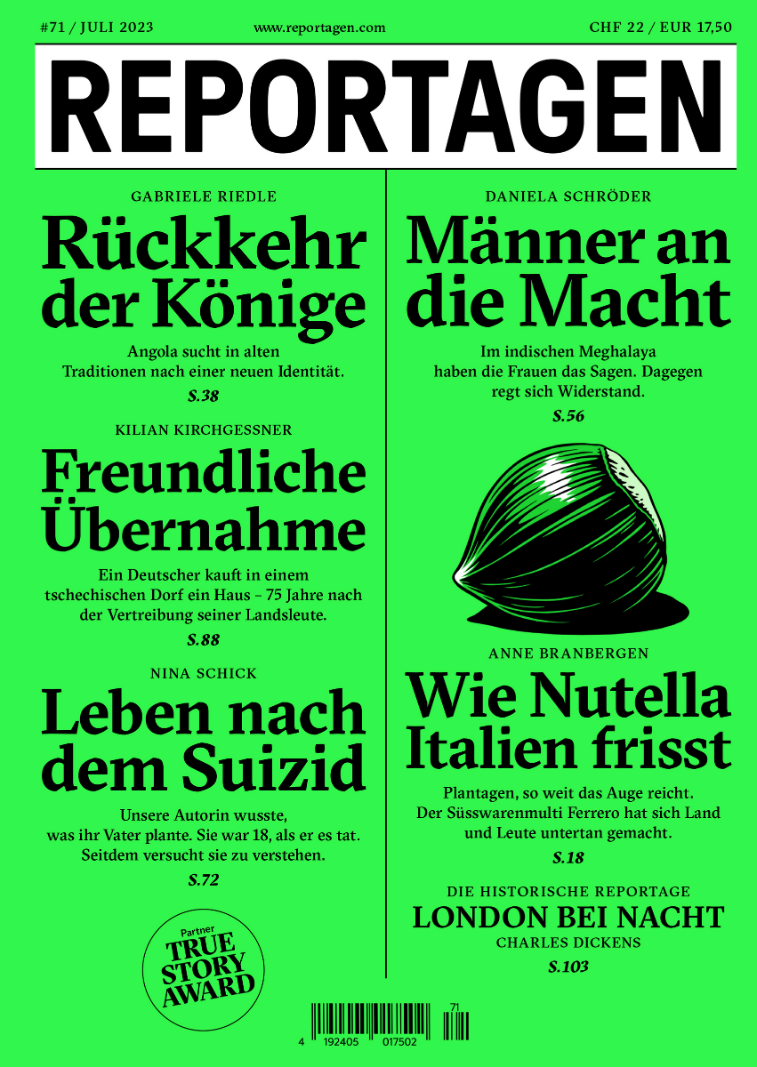 Reportagen ist ein wirtschaftlich und politisch unabhän- giges Magazin, das sich sechs Mal pro Jahr aus- schliesslich der wahrhaftigen und aussergewöhnlichen Erzählung verpflichtet.