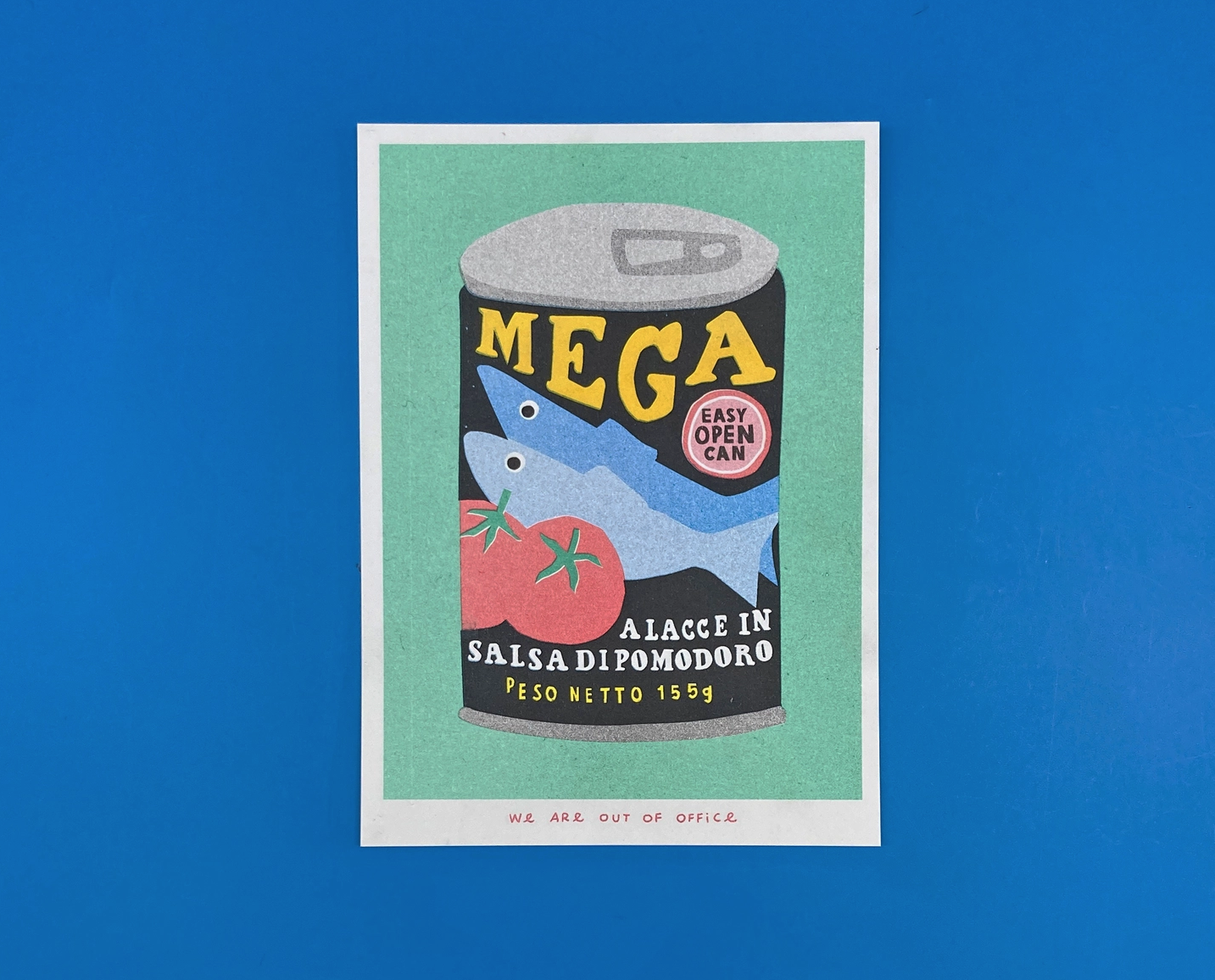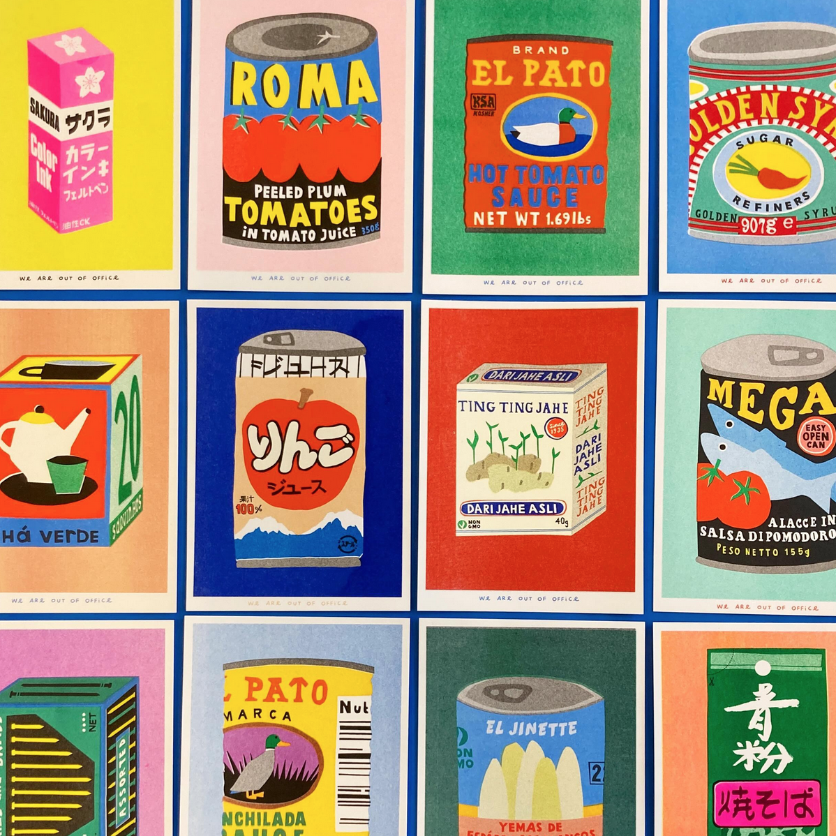(DE:) Winneke de Groot und Felix van Dam sind zwei Künstler, die unter dem Namen „We are out of office“ zusammenarbeiten. Sie gehen sehr selbständig an ihre Kunst heran und sind ausgebildete Siebdrucker, Maler und Illustratoren. Sie betreiben ein kleines Atelier mit einer Siebdruck- und Risografiewerkstatt in einem Kirschgarten in der Nähe von Utrecht. Ihre Arbeiten sind inspiriert von kleinen Raritäten und Erinnerungen, die sie im täglichen Leben aufschnappen. Sie verwenden eine breite Palette von Medien wie Druck, Malerei, Skulptur, Textilien und mehr. Ihr Stil ist unverkennbar und hat eine kühne und farbenfrohe Ästhetik, die ihren grafischen Hintergrund widerspiegelt.