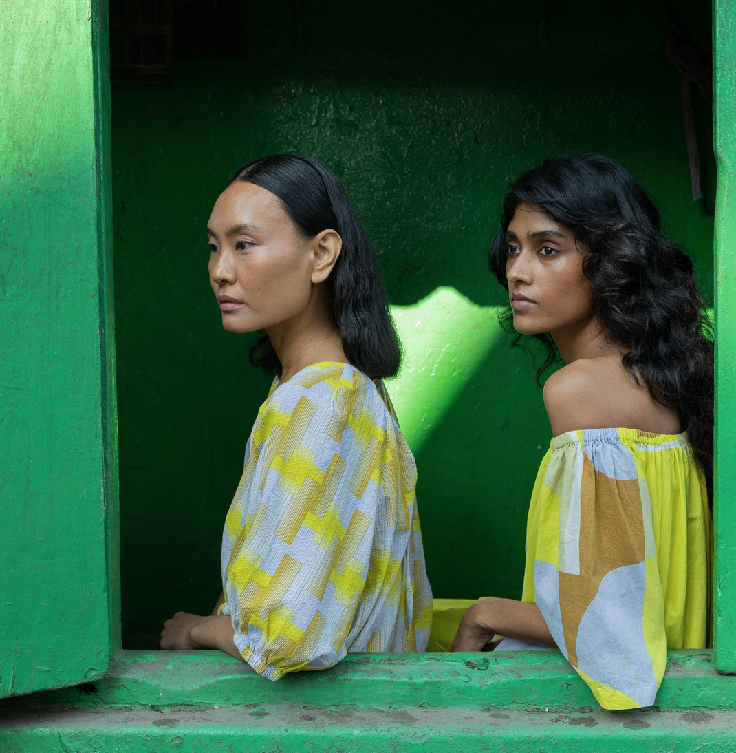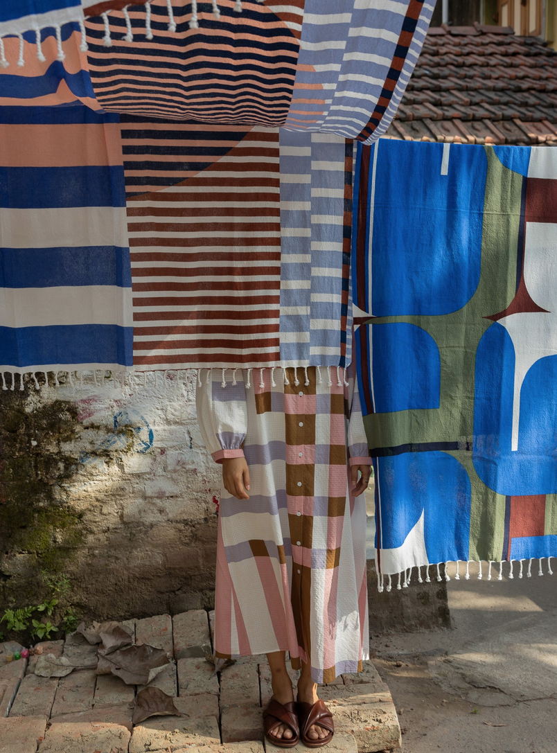 Mapoésie collaborates with artisans from India, Madagascar, Italy, Portugal, and China, blending traditional craftsmanship with modern techniques. They work with Indian workshops known for hand-frame printing and tailoring, Italian artisans in Tuscany for knitwear, Portuguese experts in printing, and a partner in China specializing in knitwear production. These global partnerships ensure high-quality, carefully crafted collections.