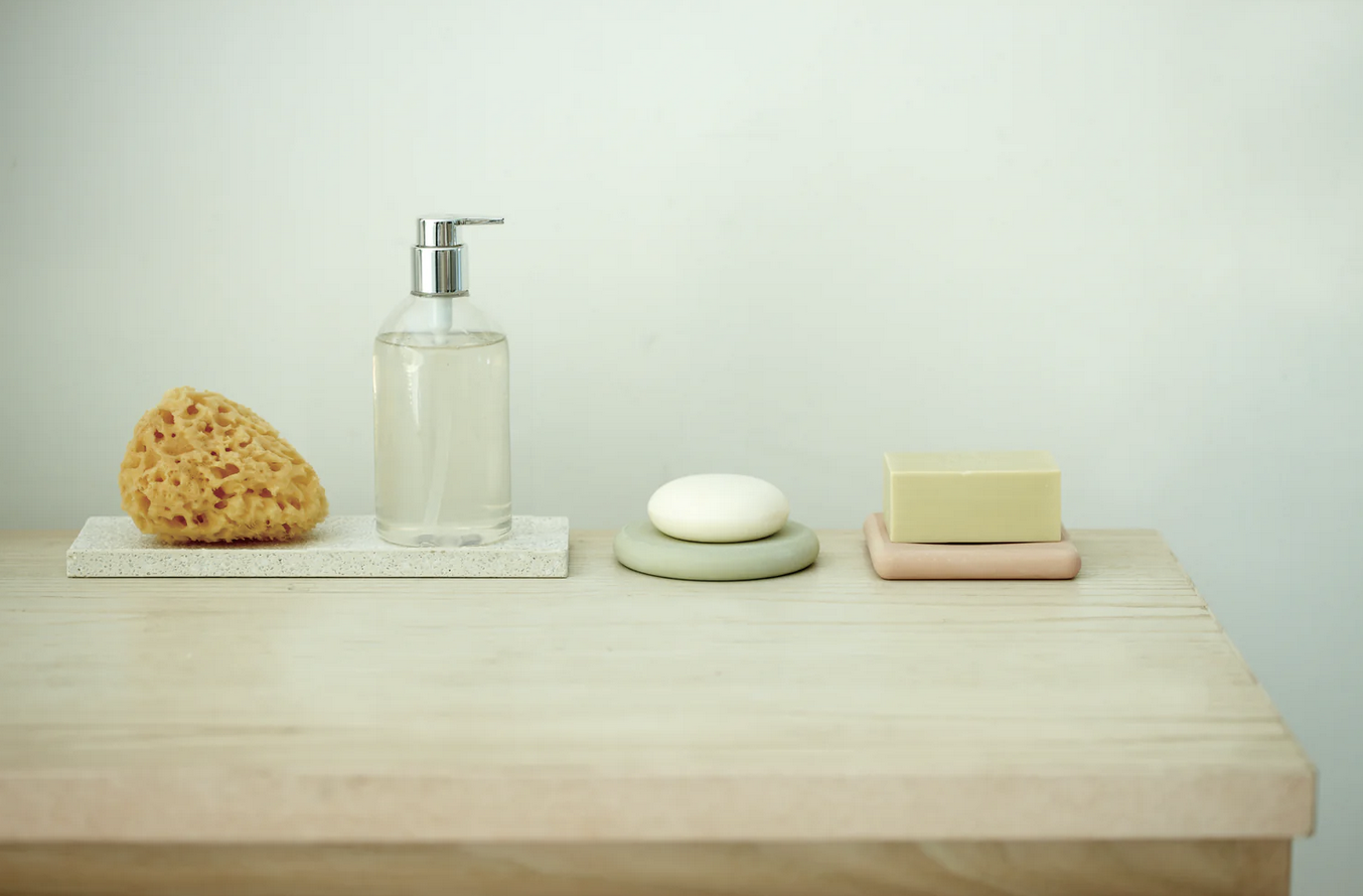 Also available is a range of products for the bathroom. Diatomaceous earth mixed with small pebbles looks beautiful and is actually ideal as a base for soap dispensers, sponges and tea.