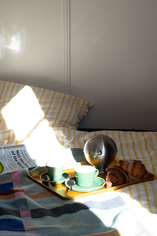Do you know that feeling? When the days get shorter and the frosty morning wind drifts through the window, you just want to stay under the warm blanket. Later, when the first weak rays of sunlight fill the room, it’s the perfect moment for breakfast in bed on a day off. Put on a jazz record, slip into the kitchen for a moment, and return under the covers with a warm cup of tea or coffee. What belongs to it for you? Maybe croissants? Or sourdough bread with salted butter and a 4-minute egg? And of course,